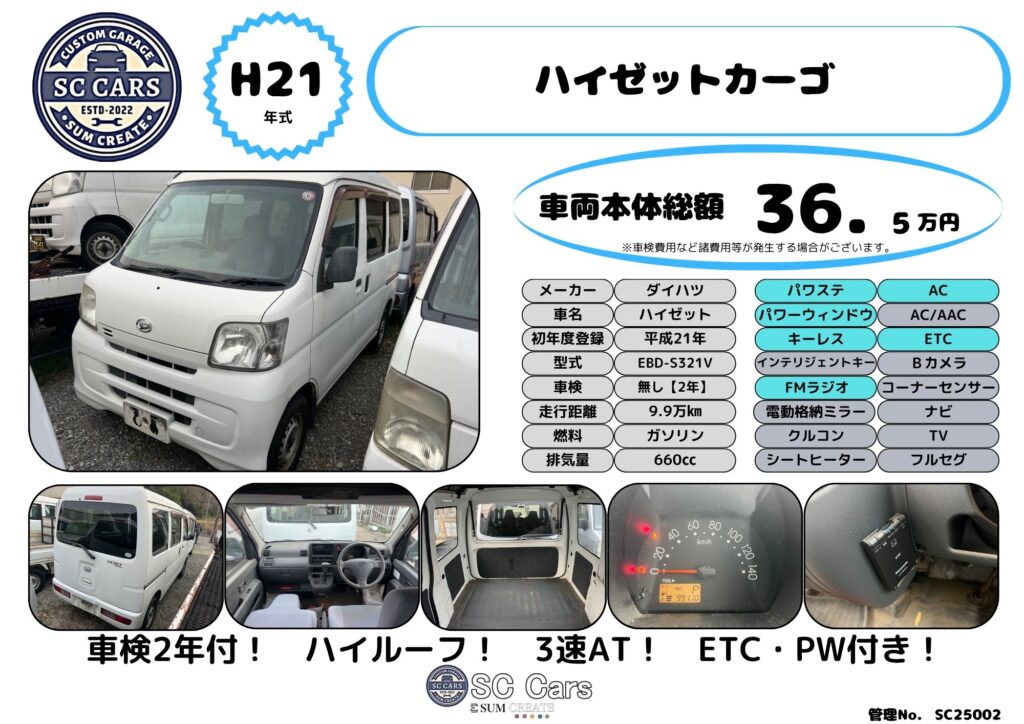 ダイハツ ハイゼットカーゴ【SC25002】