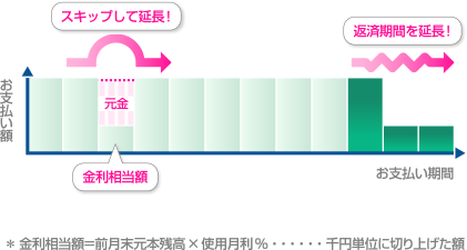 - スキップ返済で「金利相当額※」のお支払いに変更できる